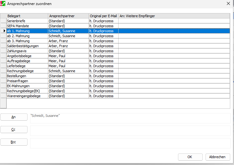 2. Für die Mahnungen 1 bis X müssen nun Ansprechpartner hinterlegt werden.